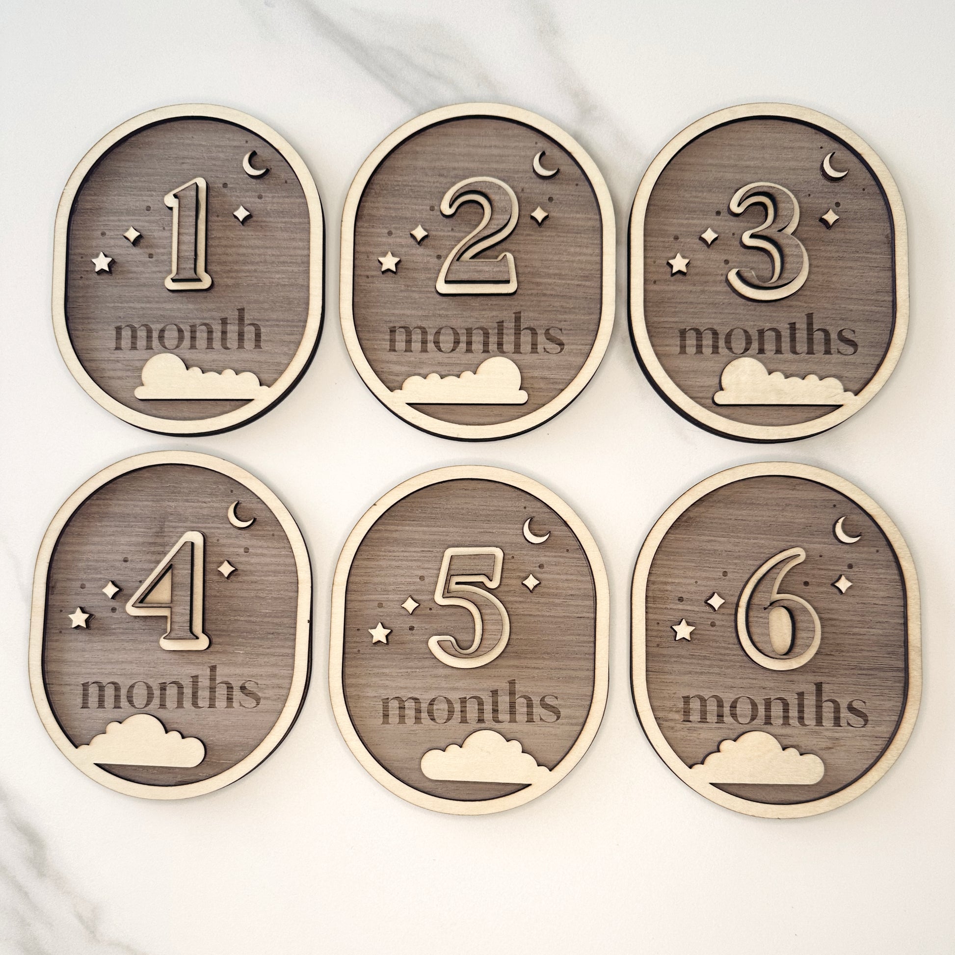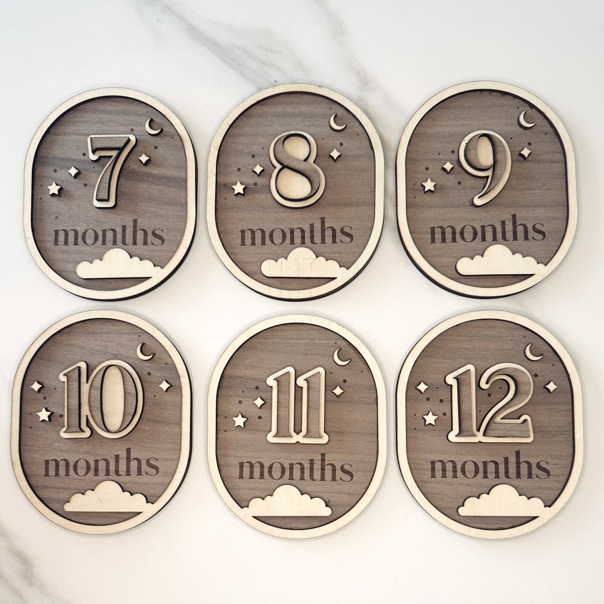 Baby Moon and Stars Wooden Milestone Cards - 12 Months